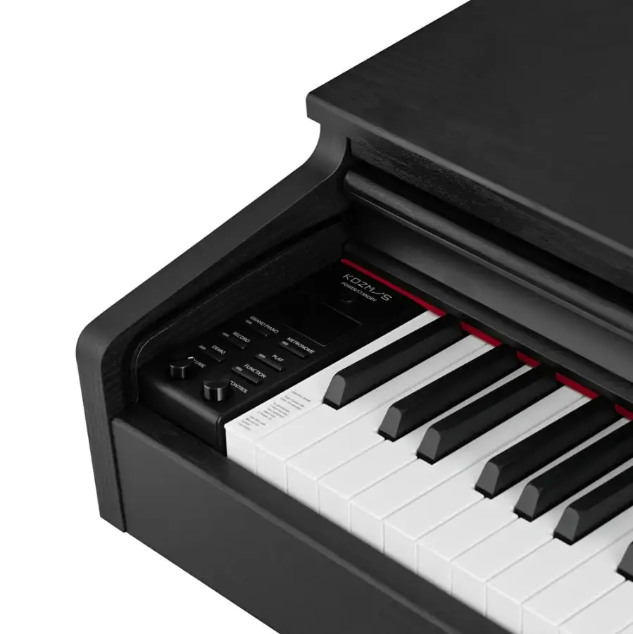 Kozmos KHP-165, zarif ve çekici kabin tasarımı ile değişime uğrar ve bir araya gelir. Yumuşak şekilli yan kolları ve sağlam ekstra ahşap ayak blokları, piyanoya esneklik kazandırırken zarif bir görünüm sunar. Geri çekilebilir tuş kapağı, klavyeyi tozdan koruyarak piyanonuzu her zaman çalmaya hazır tutar. Geniş nota sehpası, kullanımda değilken düz bir şekilde katlanarak yer tasarrufu sağlar.