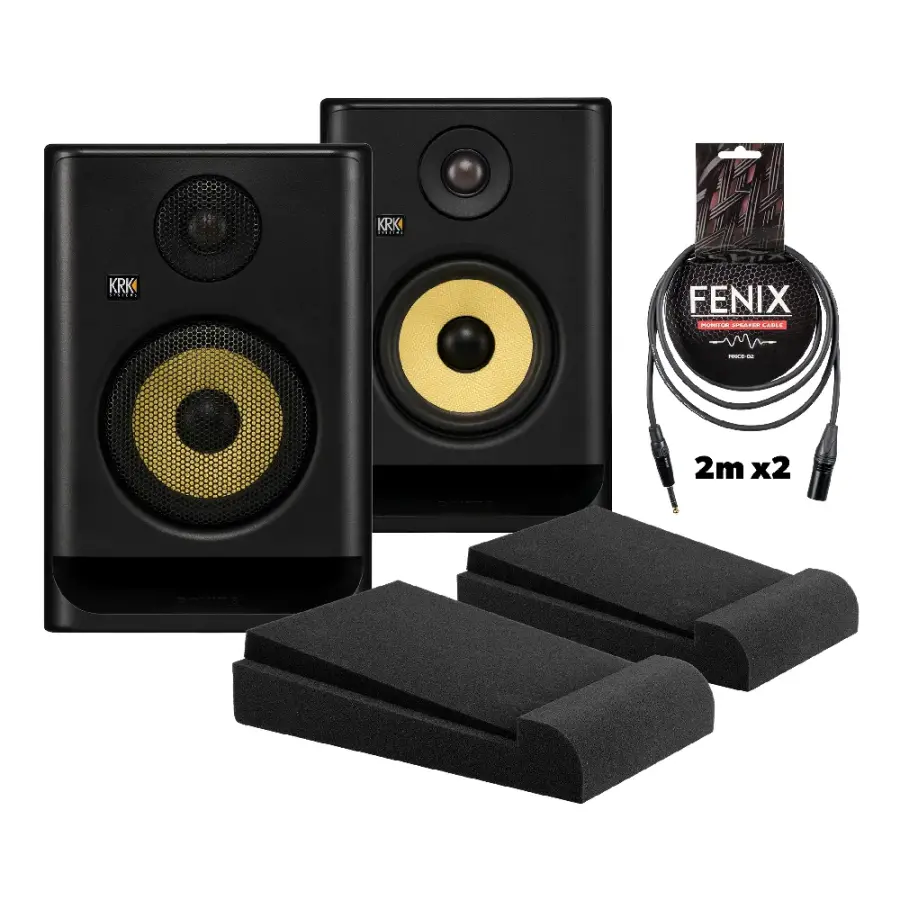 KRK RP7 G5, profesyonel müzik prodüksiyonu, miks ve mastering uygulamaları için tasarlanmış, 5. nesil Rokit serisine ait yüksek performanslı aktif stüdyo monitör hoparlör setidir. Geniş frekans tepkisi, güçlü ses basıncı ve detaylı stereo görüntüleme sunan yapısı sayesinde hem ev stüdyolarında hem de profesyonel prodüksiyon ortamlarında güvenle kullanılabilir.
