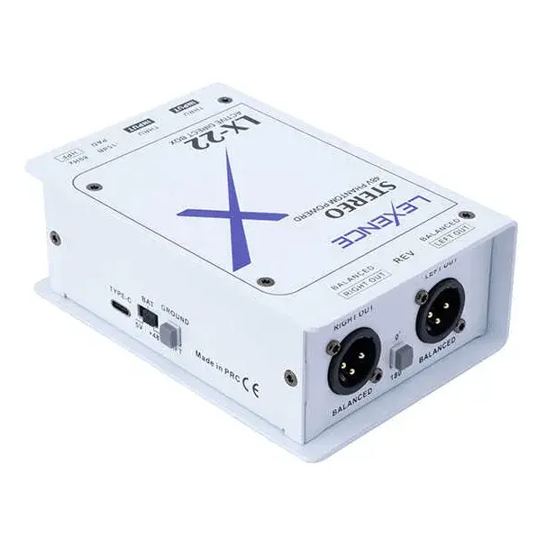 Lexence LX-22 Aktif Stereo DI Box, klavye, bilgisayar, ses kartı, DJ mikseri ve diğer line seviye stereo ses kaynaklarını profesyonel sahne ve stüdyo sistemlerine dengeli (balanced) ve parazitsiz şekilde aktarmak için tasarlanmış aktif bir DI çözümüdür. Stereo yapısı sayesinde sol ve sağ kanalları ayrı ayrı işleyerek miksere veya ses sistemine net, temiz ve kayıpsız sinyal iletimi sağlar.