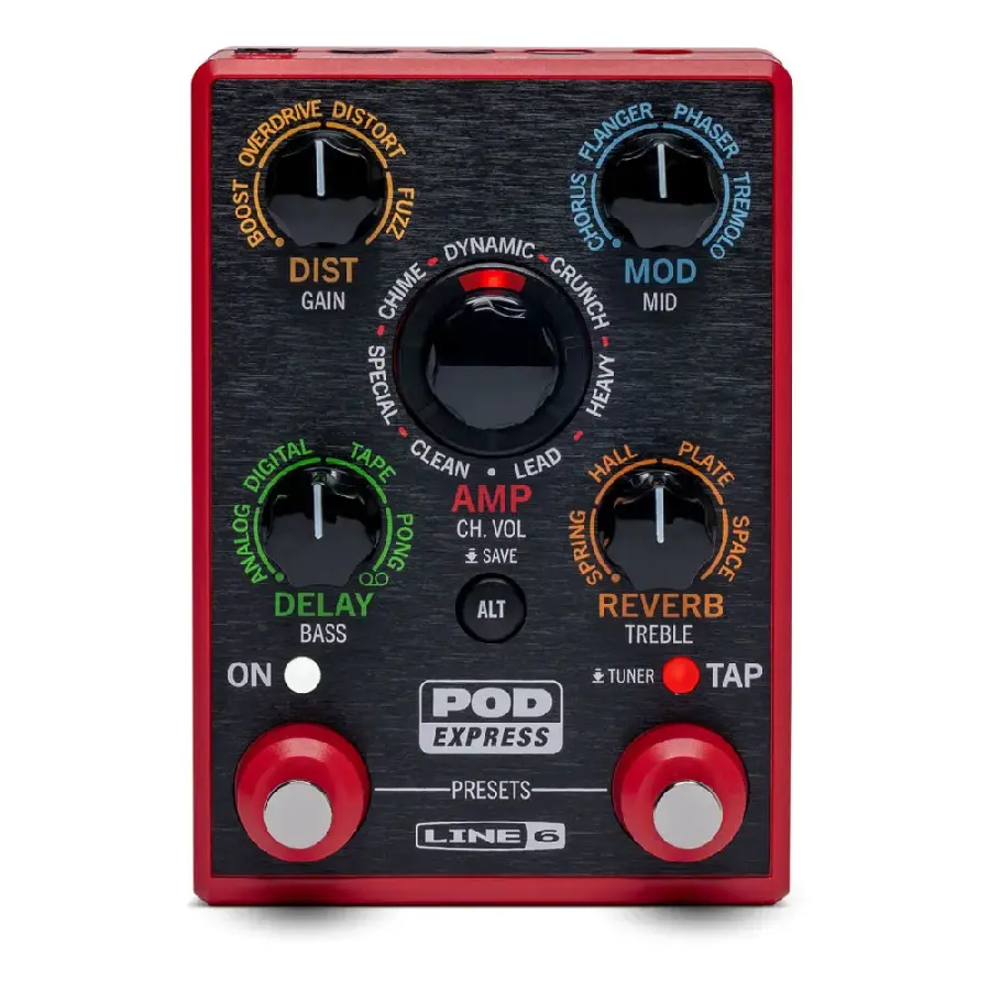 Stereo veya dual-mono çıkış seçeneği, hem tek hem de çift amfi bağlantısı için esneklik sağlarken, 3.5 mm kulaklık çıkışı sessiz çalışmayı mümkün kılar. Ek olarak, harici ayak pedallarıyla kontrol genişletilebilir. 3 adet AA pille veya 9V adaptörle çalışabilen POD Express, ister pedalboard’unuzun merkezinde ister tek başına kullanın, her ortamda güvenilir performans sunar. Basit kontrol arayüzü, LED göstergeleri ve entegre tuner ile sahnede hızlı ton ayarı yapmanızı kolaylaştırır.