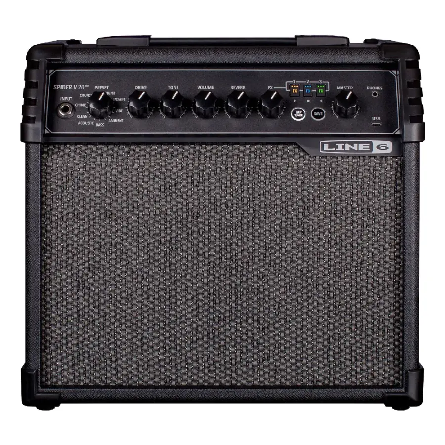 Spider V 20 MkII, 200’den fazla amfi, kabin ve efekt modeline erişim sunar ve 128 adet fabrika ön ayarıyla (preset) gitaristlerin ilhamını artırır. Line 6 Spider V Remote uygulaması (iOS, Android, Mac, Windows) üzerinden tonlarınızı düzenleyebilir, kaydedebilir ve dünya genelindeki Line 6 kullanıcılarıyla paylaşabilirsiniz. Dahili akort cihazı, tap tempo ve dijital reverb efektleriyle donatılan bu model, sessiz pratik için 3.5 mm kulaklık çıkışı ve kayıt için mikro-USB bağlantısı sunar.