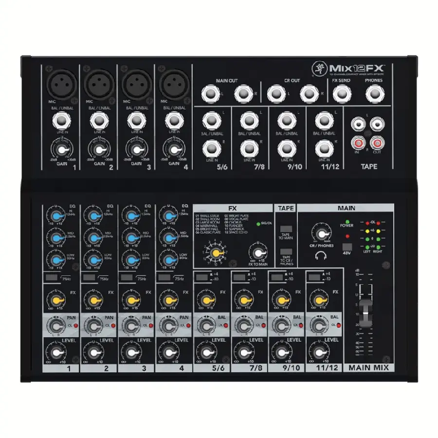Gelince Haber VerMackie MIX12FX 12 Kanallı Efektli Kompakt Mikser, yüksek kaliteli ses işleme kapasitesi ve entegre dijital efektleriyle sahne, stüdyo ve yayın uygulamaları için tasarlanmış profesyonel bir çözümdür. 4 mikrofon/hat girişi, 4 stereo hat kanalı ve 3 bantlı EQ sistemiyle ton kontrolünü hassas biçimde sağlar. 48V fantom gücü sayesinde kondenser mikrofonlarla tam uyumlu çalışır. Dahili 12 dijital efekt (reverb, chorus, delay vb.) mikslerinize derinlik ve karakter katar. Sağlam metal kasası, taşınabilir yapısı ve kapsamlı bağlantı seçenekleriyle uzun ömürlü bir performans mikseri arayan kullanıcılar için mükemmel bir tercihtir.