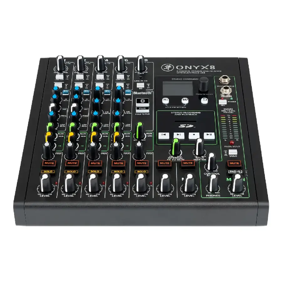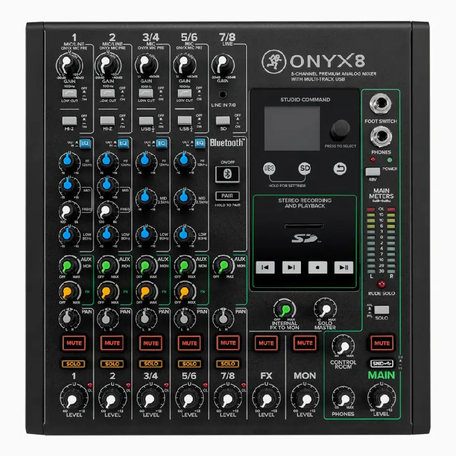 Gelince Haber VerMackie Onyx8, kompakt tasarımıyla stüdyo, sahne ve yayın ortamlarında profesyonel kalite arayan müzisyenler, ses mühendisleri ve içerik üreticileri için tasarlanmış bir 8 kanallı analog mikserdir. 24-bit / 96 kHz çözünürlükte çok kanallı kayıt (8x4 USB Multitrack) özelliği, yüksek kazançlı Onyx mikrofon preamfileri, British Perkins 3 bant EQ devresi ve ultra düşük gürültü tasarımıyla kristal netliğinde ses kalitesi sunar.