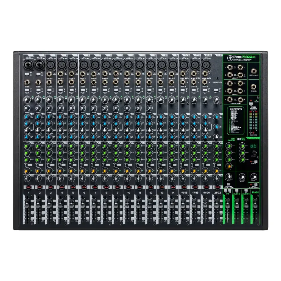 Gelince Haber VerMackie ProFX22v3, profesyonel canlı performanslar, ibadet alanları, provalar ve kayıt stüdyoları için tasarlanmış, güçlü bir 22 kanallı analog ses mikseridir. 17 adet yüksek kaliteli Onyx mikrofon preamfisi, 60 dB kazanç ve ultra düşük gürültü performansıyla temiz, dinamik ve detaylı bir ses elde etmenizi sağlar. Dahili GigFX efekt motoru, 24 farklı efekt (reverb, delay, chorus, flanger vb.) sunarak mikslerinize profesyonel bir derinlik kazandırır.