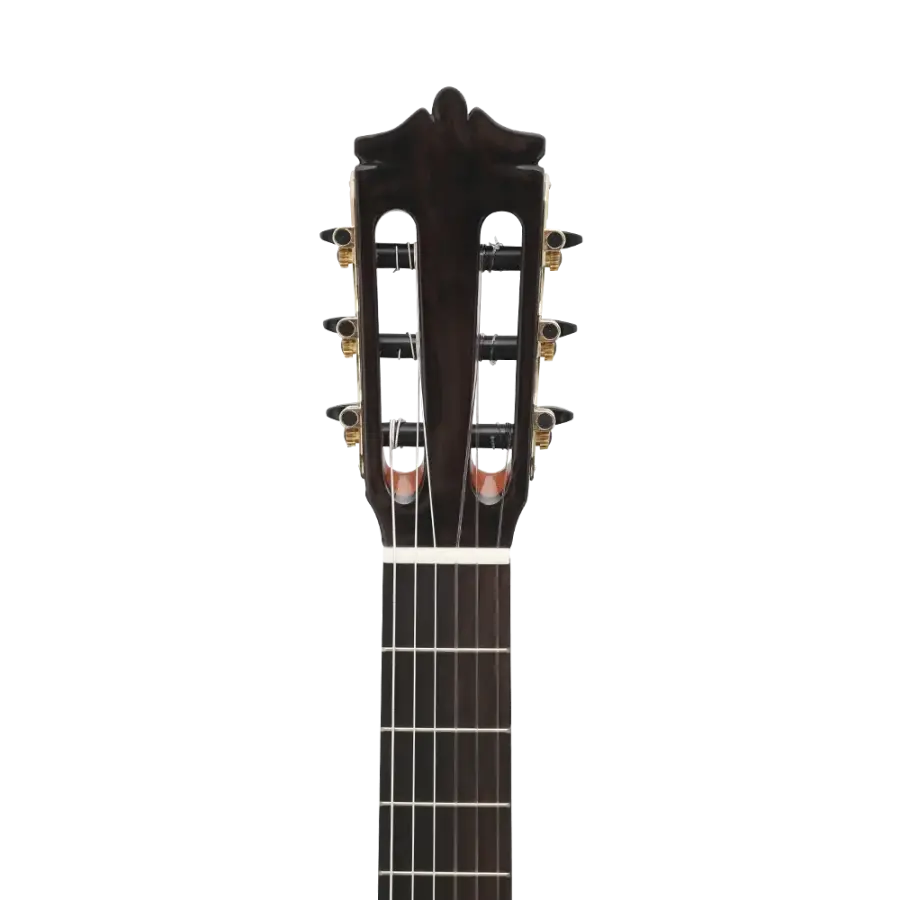 Masif Sedir Üst Kapak: Gitarın ön kapağı, ses açısından zengin ve rezonansı güçlü bir ağaç türü olan masif sedirden yapılmıştır. Sedir ağacı, yüksek frekanslarda parlaklık sağlarken, alt frekanslarda dengeli ve sıcak bir ton sunar. Bu özellik, gitarın akustik ses performansını üst seviyeye taşır.