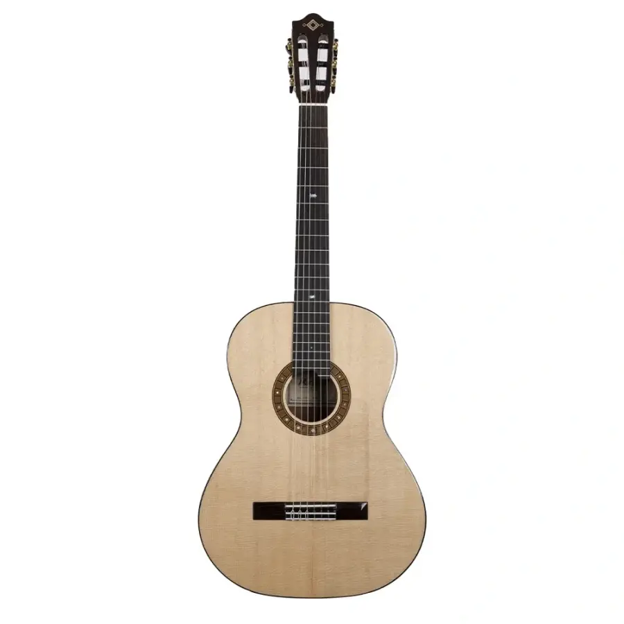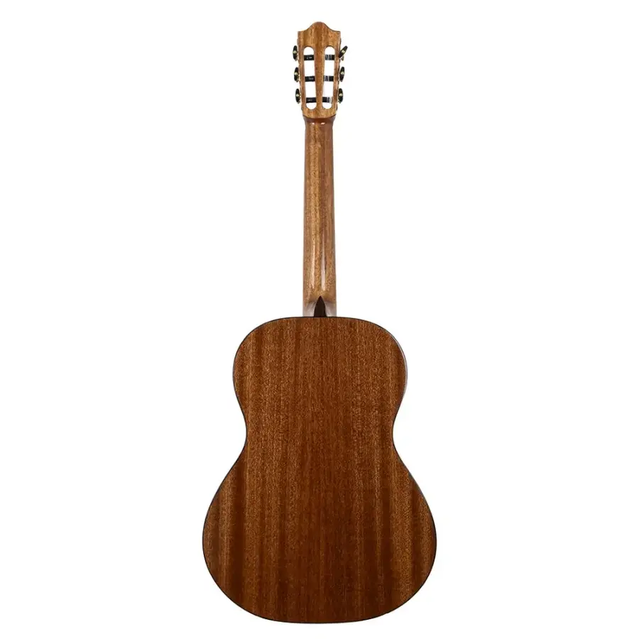 Doğal ağaç dokusu korunarak üretilen bu gitar, hem bakımı hem de estetik görünümü ile öne çıkar. Sade ama şık tasarım, klasik gitar geleneklerini yansıtırken uzun ömürlü kullanım sağlar.