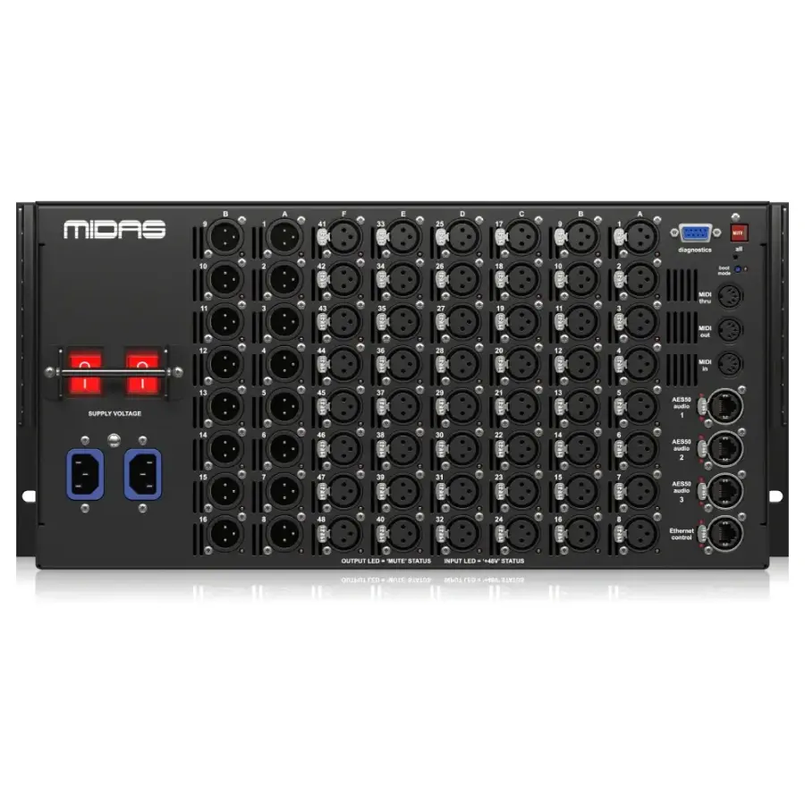 Üzerindeki 3 adet AES50 SuperMAC portu, yüksek kanal sayılı dijital ses transferine izin verirken (n+1) yedeklilik desteği ile sistem bütünlüğünü güvence altına alır. DL251 ayrıca Midas protokollerini kullanan özel bir Ethernet kontrol portu içerir ve tüm giriş parametreleri uzaktan yönetilebilir.