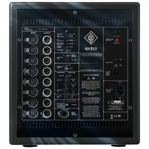 The KH 810 subwoofer is designed to complement Neumann's extensive range of monitors, and can be used on its own, or daisy-chained to make larger systems capable of higher SPL. The KH 810 can be used in music, broadcast, and post production studios for tracking, mixing, and mastering. The cabinet can be positioned next to a wall or flush mounted into a wall due to the front mounted port, and can be mixed freely in multichannel systems with other loudspeakers from Neumann's range.