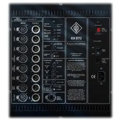 Eight channels of analog ensures flexible interconnectivity for modern studios. Four-mode LFE-channel processing guarantees compatibility across all formats and industries. Forth-order crossovers and flexible acoustical controls allow for seamless system integration. Built-in volume control and a hardware remote control allows for centralized system control independent of the source, and the electronics can be remote located to reduce cabling. From Mono to 3D, there are uses for the KH 870 in many different system configurations.