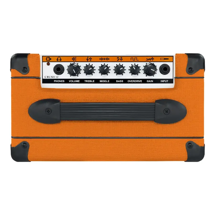 Orange Crush 12, tamamen analog devre yapısına sahip kompakt bir elektro gitar combo amfisidir. 12 Watt çıkış gücü ve özel üretim 6 inç Voice of the World hoparlörü sayesinde ev pratiği için ideal ses seviyesinde, Orange’a özgü karakteristik tonları net ve dengeli şekilde sunar.