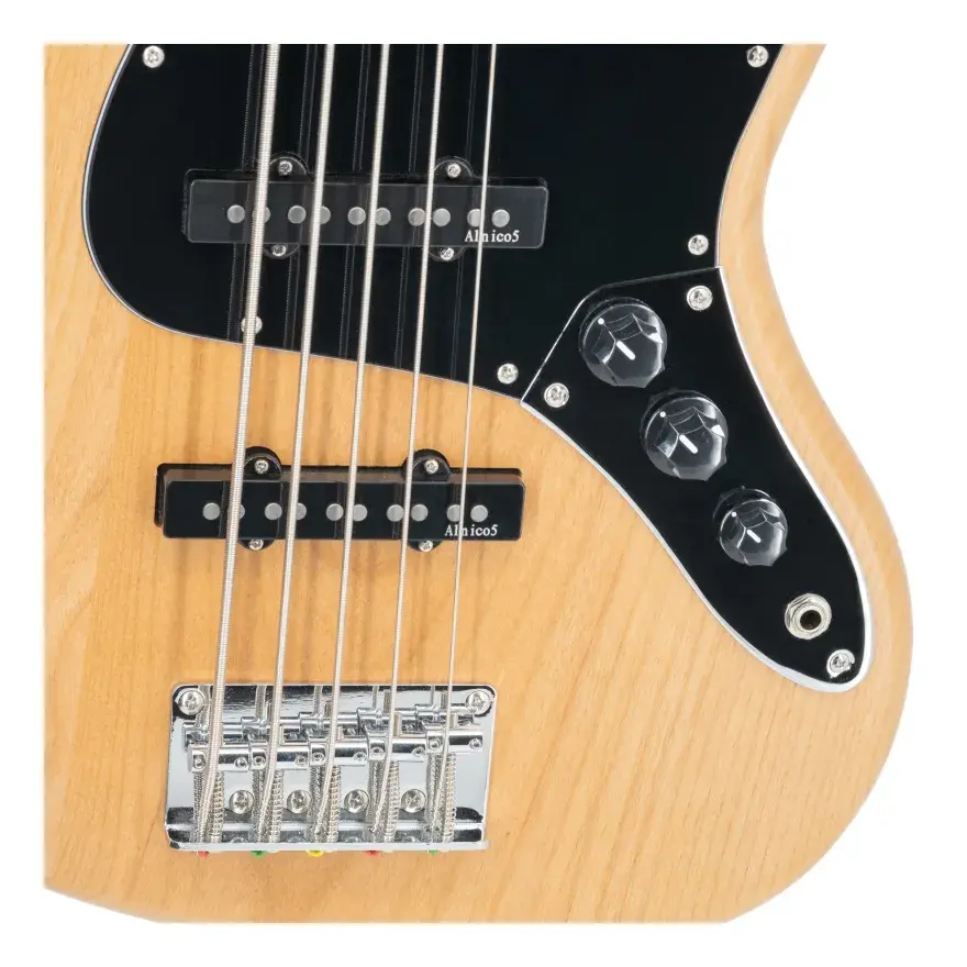 Gelince Haber VerProdipe JB90 MA Alder Natural 5 Telli Elektro Bas Gitar, güçlü, dinamik ve yüksek sustain sağlayan yapısıyla profesyonel bas gitaristler için tasarlanmıştır. Açık gözenekli doğal alder gövde, ahşabın doğallığını hissettiren estetik bir görünüm sunarken, 70’ler tarzında verniklenmiş Kanada akçaağaç sap ve akçaağaç klavye daha parlak ve net tonlar üretir. 9.5” radius ise en iyi Amerikan modelleriyle aynı standartlarda üretilmiştir.