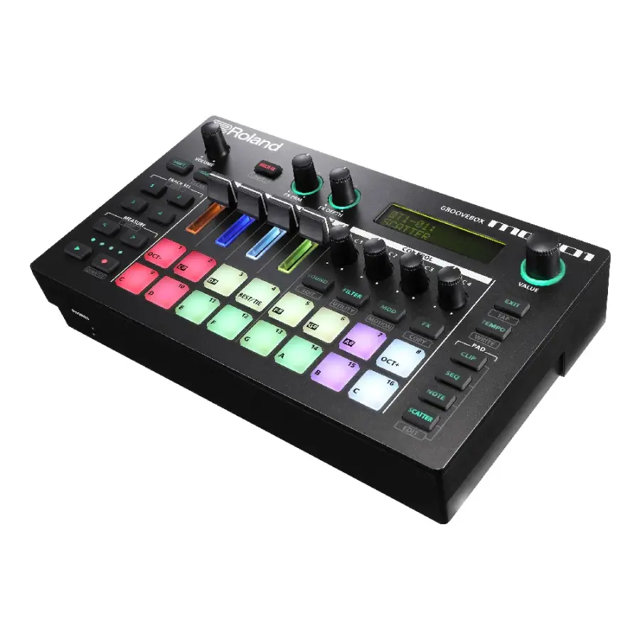 Roland MC-101, kompakt boyutlarına rağmen profesyonel seviyede prodüksiyon ve performans imkânı sunan, pilli kullanıma uygun gelişmiş bir groovebox çözümüdür. Roland’ın amiral gemisi MC-707 modelinde kullanılan teknolojileri taşınabilir bir form faktörüne taşıyan MC-101, hem stüdyo hem de sahne kullanımına yönelik çok yönlü bir müzik üretim merkezidir.
