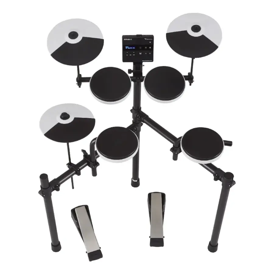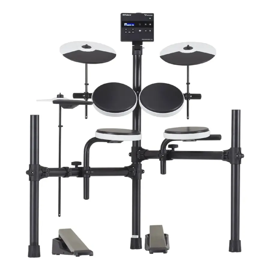 Setin merkezinde yer alan TD-02 ses modülü, 16 adet hazır davul kiti ve Roland’ın üst seviye V-Drums serisinden türetilmiş doğal davul sesleri ile etkili bir çalışma deneyimi sağlar. Dahili metronom ve Coach fonksiyonları; tempo kontrolü, zamanlama ve ritim gelişimini destekler. USB bağlantısı üzerinden MIDI ve 44.1 kHz / 16-bit dijital ses aktarımı ile bilgisayar tabanlı müzik yazılımlarıyla sorunsuz entegrasyon sunar.