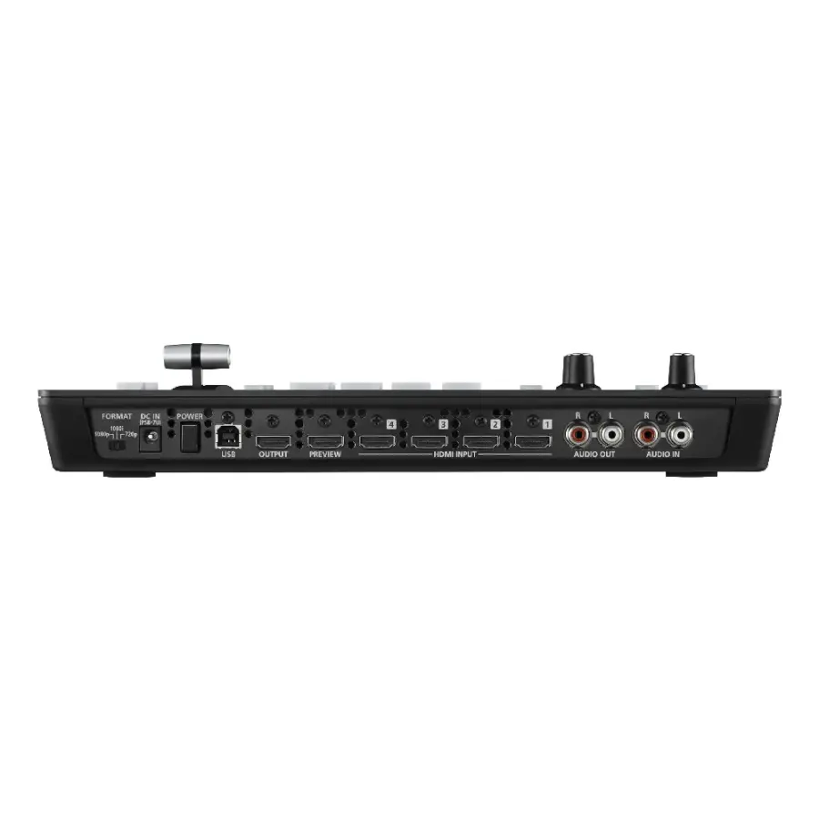 Cihaz, dahili 12 kanallı dijital ses mikseri ile HDMI üzerinden ses gömme ve çözme işlemlerini hassas bir biçimde yönetir. Manuel T-Bar kolu, geçiş efektlerini yumuşak veya anlık şekilde kontrol etmenize olanak tanır. Ayrıca Picture-in-Picture, Green Screen (kroma anahtarlama) ve split screen gibi gelişmiş video efektleriyle yaratıcı geçişler oluşturabilirsiniz.