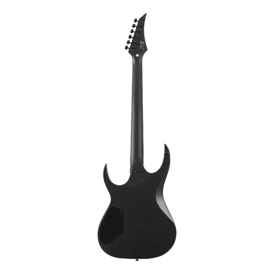25.5” skala uzunluğu, rahat C şeklinde sap profili ve bolt-on sap bağlantısı çalım kolaylığı sağlarken; poplar gövde malzemesi güçlü rezonans üretir. Ön ve arka manyetiklerde yer alan Custom High Output Ceramic Humbucker manyetikler, yüksek gain ve güçlü distortion tonlarıyla metal gitaristler için özel olarak tasarlanmıştır. 500k potanslar, 3 yollu switch ve siyah metal dome kontrol yapısı gitarın tonal çeşitliliğini artırır.