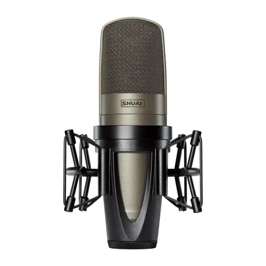 - Açık kafes ShureLock® kauçuk süspansiyon şok montajı ile alçak profilli Popper Stopper™ manyetik pop filtresi, performansçı ve mikrofon arasında doğal bir mesafe oluşturur.