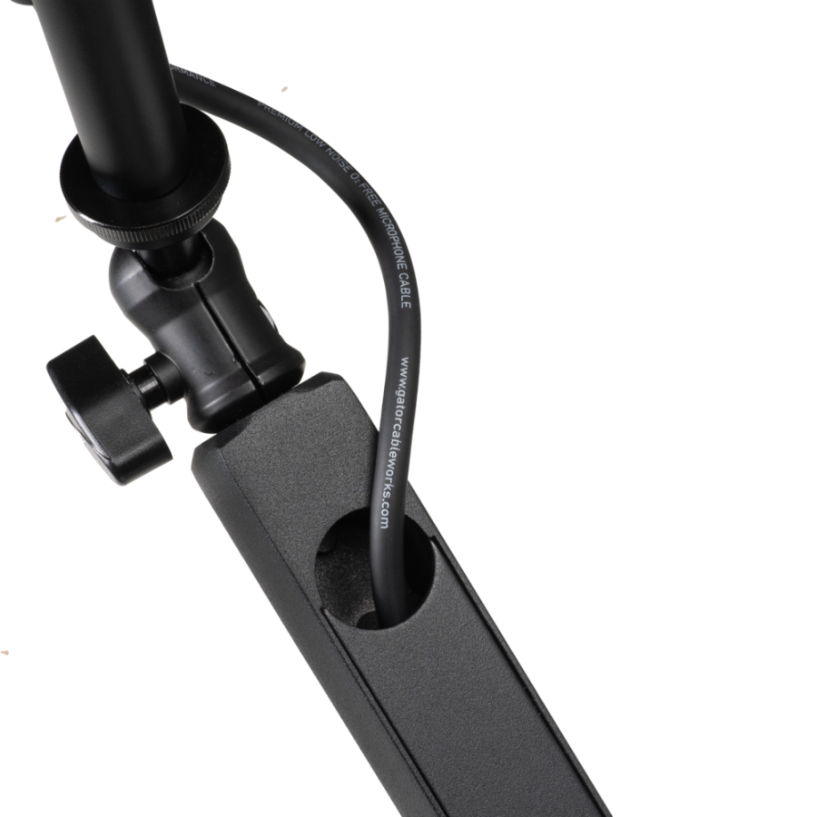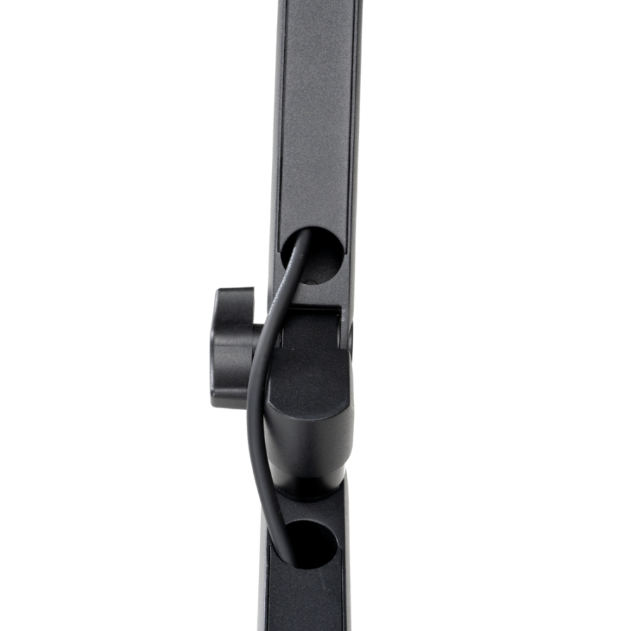 Ürün, iki farklı montaj seçeneğiyle birlikte gelir. Masa kelepçesi ile 55 mm kalınlığa kadar olan yüzeylere kolayca sabitlenebilir veya doğrudan delme montajı ile masa üzerine kalıcı kurulum yapılabilir. Üst kısımda yer alan manyetik kablo kanalı, XLR veya USB mikrofon kablolarının düzenli şekilde yönlendirilmesini sağlayarak masa üzerindeki kablo karmaşasını ortadan kaldırır.
