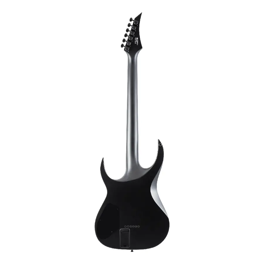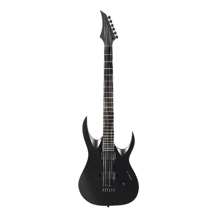 27 inç ölçek uzunluğu, özellikle B standard ve daha düşük akortlarda tel gerginliğini koruyarak net ve güçlü ton üretir. 3 parça akçaağaç sap ve set-thru bağlantı yapısı sustain süresini artırırken üst perdelere rahat erişim sağlar. C profil sap yapısı ve 24 perde tasarımı modern metal teknikleri için ergonomik çalım sunar.