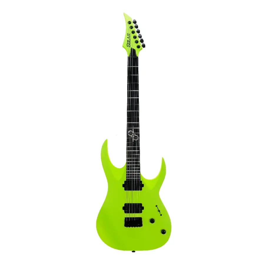 Solar A2.6LN, modern metal gitaristleri için tasarlanmış, agresif görünümü ile yüksek performansı bir araya getiren profesyonel bir elektro gitar modelidir. Lemon Neon Matte mat yüzeyi, sahnede güçlü bir görsel etki yaratırken; ergonomik gövde yapısı ve teknik donanımı ile üst düzey çalım konforu sunar.