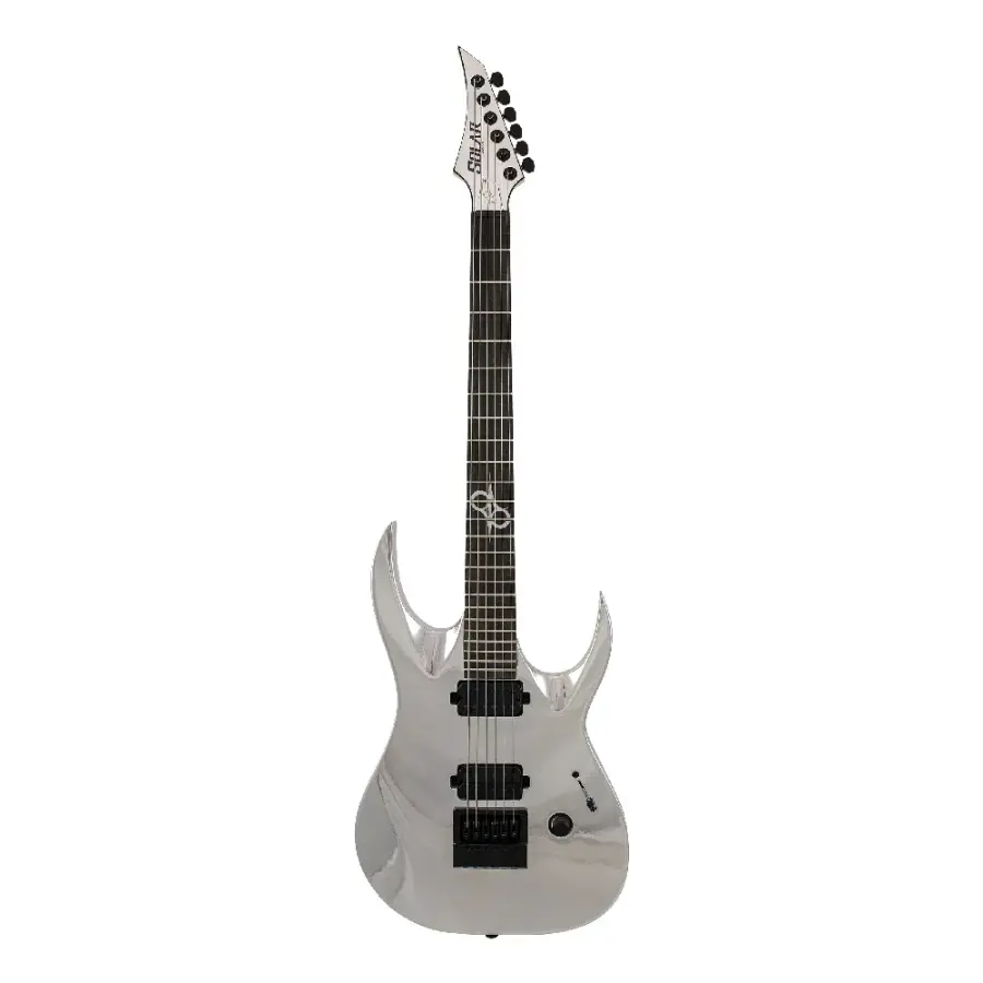 Solar AB1.6ET BCN Chrome, Solar’ın üst seviye AB serisinde yer alan ve çarpıcı krom kaplamasıyla sahnede güçlü bir görsel etki yaratan özel bir modeldir. Mahogany gövde ve flame maple üst kaplama kombinasyonu zengin mid karakteri ve dengeli sustain sunar.