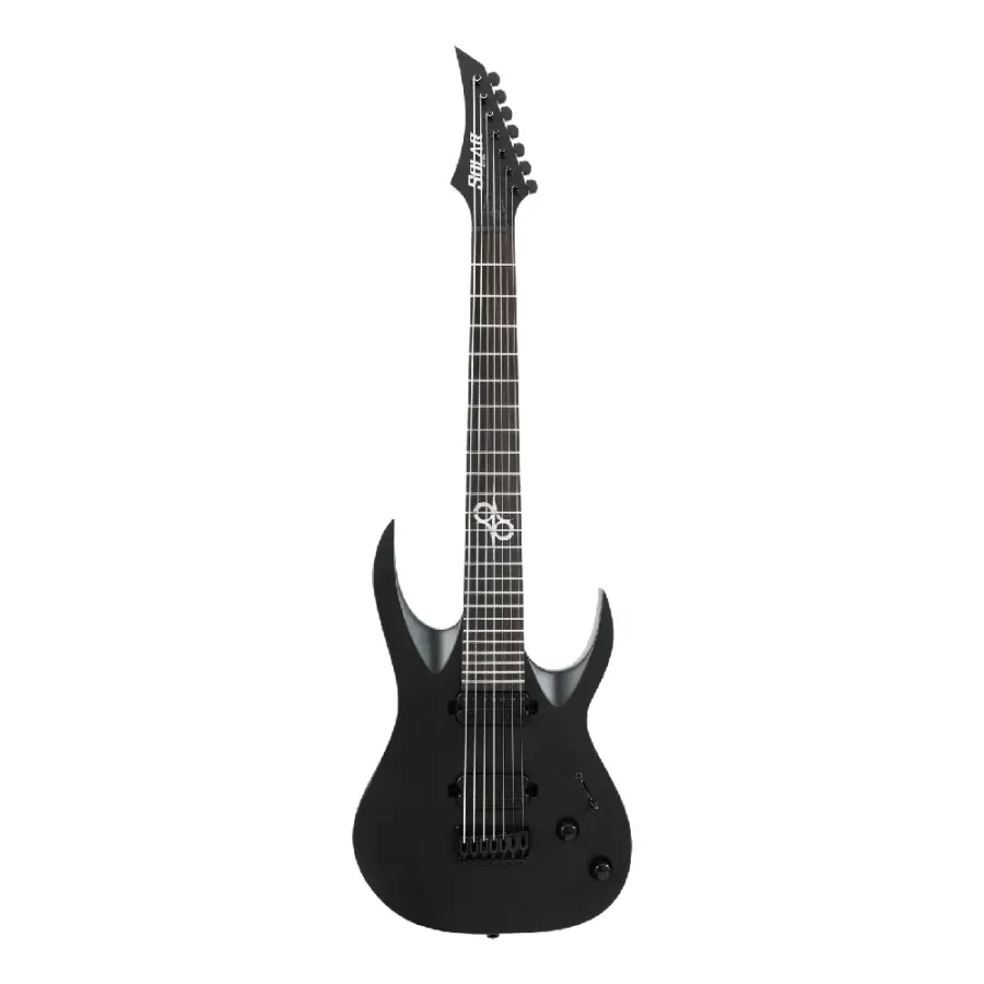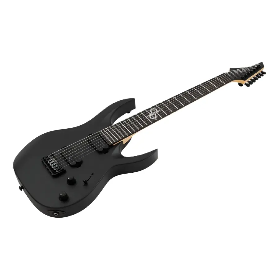 Solar AB2.7C MKII, modern metal gitaristleri için tasarlanmış 7 telli agresif karakterli bir modeldir. Carbon Black Matte kaplaması ve siyah donanımı ile stealth görünüm sunarken, geniş frekans aralığı sayesinde düşük akortlu riff ve teknik çalım performansında yüksek netlik sağlar.