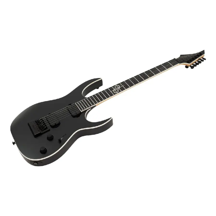 Maun gövde ve 5 parça akçaağaç / jatoba sap kombinasyonu, dengeli frekans tepkisi ve güçlü sustain üretir. Set-thru sap bağlantısı üst perdelere rahat erişim sağlar. 25.5” skala uzunluğu ve 24 adet paslanmaz çelik perde, modern akort düzenleri ve hızlı teknik çalım için yüksek hassasiyet sunar. Abanoz klavye ve R350 yarıçap, konforlu ve hızlı bir çalım yüzeyi oluşturur.