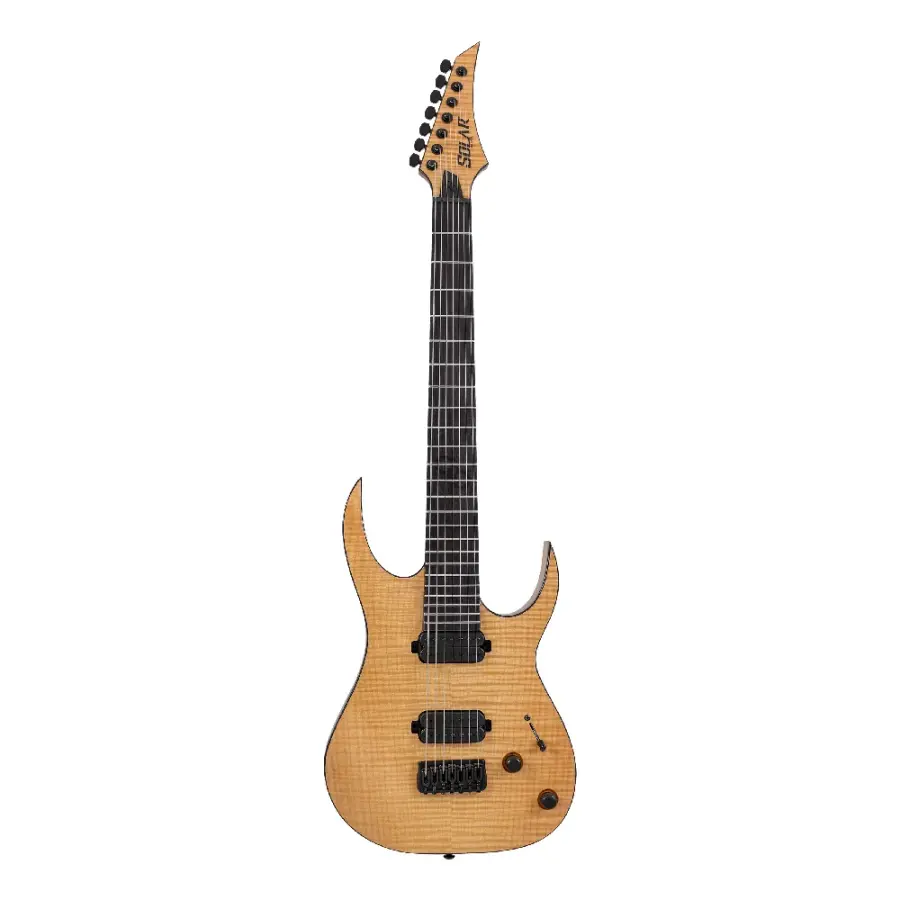 Solar SR1.7HFN, Solar SR serisinin modern metal ve teknik çalım odaklı 7 telli modellerinden biridir. Natural Gloss kaplamalı flame maple üst yüzeyi, doğal ve premium bir görünüm sunarken sahne ve stüdyo performansı için tasarlanmış güçlü donanımlarla desteklenir.