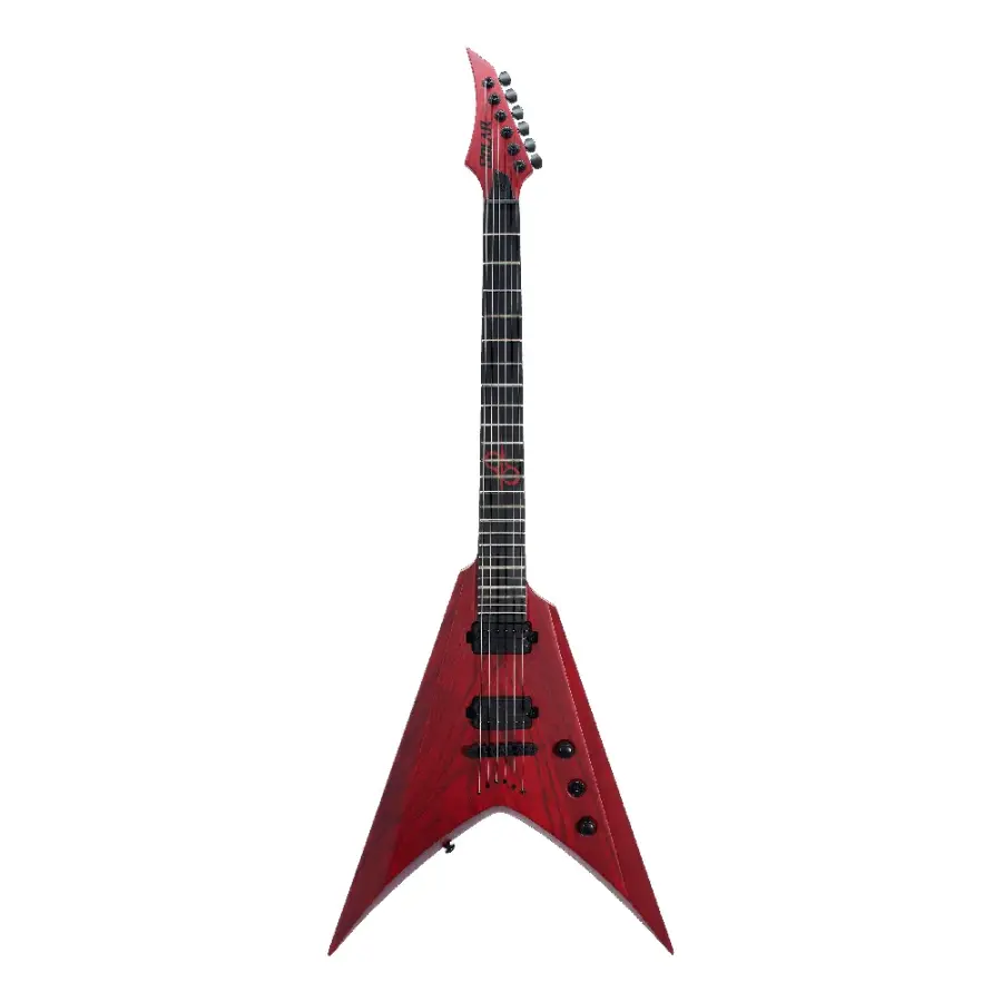 Solar V2.6TBR SK, Type V gövde formu ve Trans Blood Red Matte kaplaması ile modern metal sahnesine güçlü bir görsel ve tonal karakter sunar. Dikkat çekici kırmızı tonlu şeffaf kaplaması, ağacın damar yapısını ön plana çıkarırken agresif V tasarımı sahne üzerinde net bir duruş sağlar.