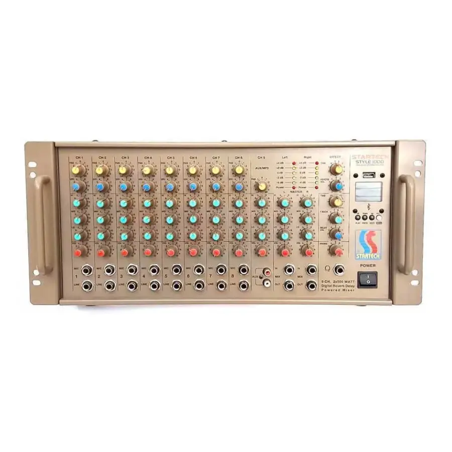 Startech Style 1000 USB Kombine Model, hem düşük empedanslı (4 Ohm) hoparlör sistemleri hem de 70V / 100V hat tipi trafo sistemleri ile çalışabilen çok yönlü bir power mikser çözümüdür. 2 x 500 Watt çıkış gücü sayesinde sahne uygulamaları ve sabit kurulum projelerinde esnek kullanım imkanı sunar.