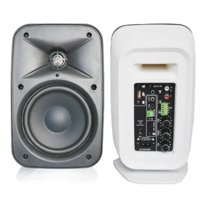 Studio Plus SH-5A, profesyonel ses üretimi ve miksaj süreçleri için tasarlanmış kompakt bir 5’’ aktif stüdyo monitörüdür. 50 Watt maksimum güç kapasitesiyle güçlü ve dengeli bir ses performansı sunan bu hoparlör, hem ev stüdyoları hem de profesyonel kayıt ortamları için idealdir. 8Ω empedans değeri, cihazın farklı ses sistemleriyle sorunsuz uyum içinde çalışmasını sağlar. 65Hz – 20kHz frekans aralığı, baslardan tizlere kadar tüm frekansları net bir şekilde iletirken, 87dB hassasiyet değeriyle de detaylı ve doğru bir ses çözünürlüğü sağlar.