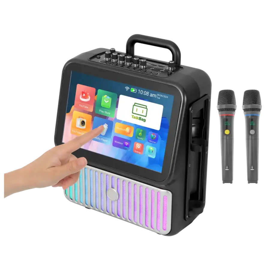 Dokunmatik ekranlı taşınabilir Talkbag hoparlör; yüksek kaliteli ses, çoklu bağlantı seçenekleri ile eğlenceyi her yere taşıma kolaylığı sunar.