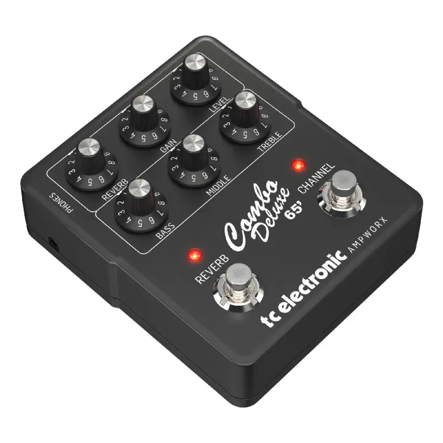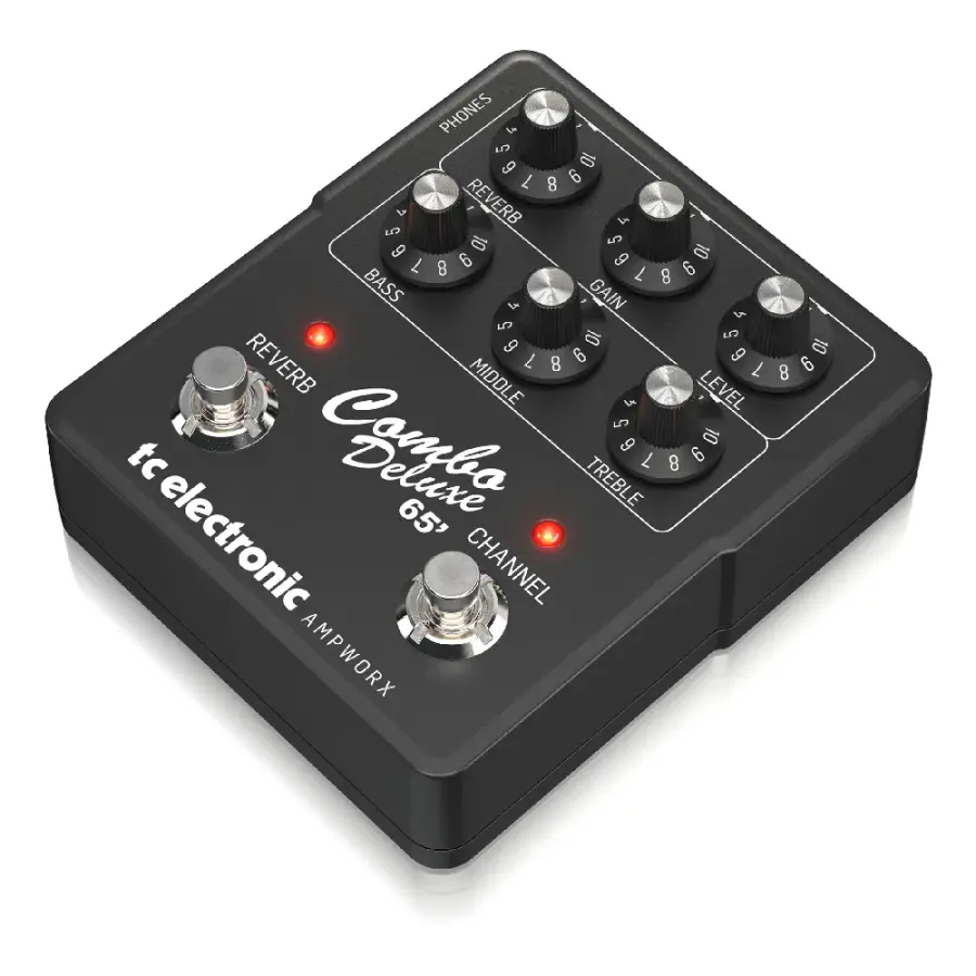 TC Electronic Combo Deluxe 65 Preamp, 1965 Fender Blackface Reverb Deluxe amfisinin efsanevi Amerikan lambalı ton karakterini modern TC AMPWORX modelleme teknolojisi ile pedal formatında sunan profesyonel bir preamp pedalidir. Cam gibi temiz clean tonlardan doygun ve dinamik drive karakterlerine kadar geniş bir tonal yelpaze sunarak blues, jazz, rock ve modern müzik türlerinde güvenle kullanılabilir.