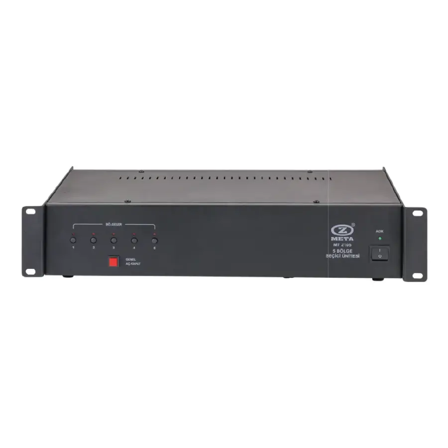 Gelince Haber VerWest Sound MT 2105, çok bölgeli seslendirme ve anons sistemlerinde hoparlör hatlarının merkezi ve güvenli şekilde yönetilmesi amacıyla geliştirilmiş profesyonel bir 5 bölgeli hoparlör seçici ünitesidir. Tek bir güç amplifikatöründen gelen ses sinyalinin birden fazla bölgeye kontrollü olarak dağıtılmasını sağlar ve her bölgenin bağımsız olarak devreye alınmasına olanak tanır. Kamu binaları, camiler, okullar, fabrikalar ve ticari tesislerde bölgesel ses kontrolü gerektiren kurulumlar için ideal bir çözümdür.