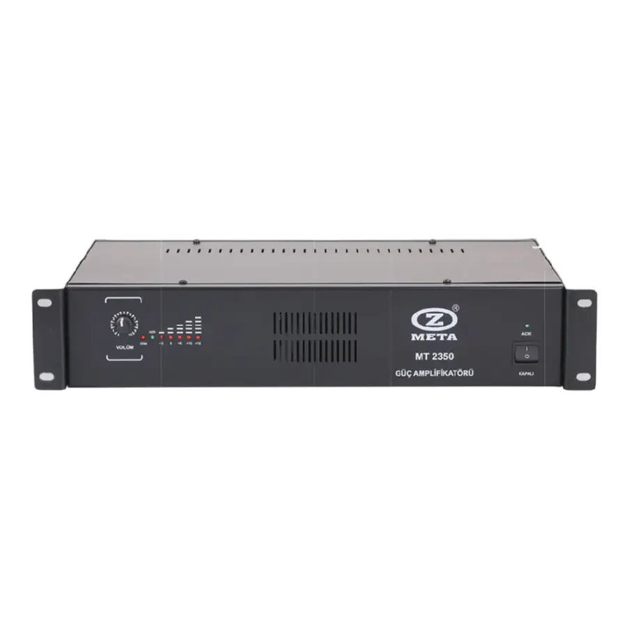 Üzerinde yer alan LED’li VU metre, çıkış seviyesinin anlık olarak izlenmesine imkân tanıyarak sistem ayarlarının kontrollü biçimde yapılmasını sağlar. Dahili DC hoparlör koruma ve çıkış kısa devre koruma devreleri, hem amplifikatörü hem de bağlı hoparlörleri elektriksel risklere karşı güvence altına alır.