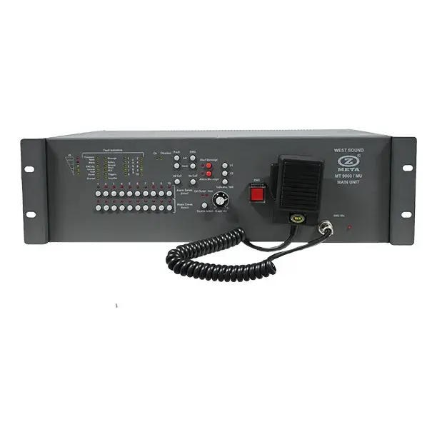 Gelince Haber VerWest Sound MT 9000 MU AMP, EN 54-16 standardına uygun olarak geliştirilmiş, dahili amplifikatöre sahip profesyonel bir acil anons ve tahliye sisteminin tümleşik merkez ünitesidir. 250 Watt dahili amplifikatör gücü sayesinde harici güç amplifikatörüne ihtiyaç duymadan anons ve müzik yayını yapılmasına olanak tanır.