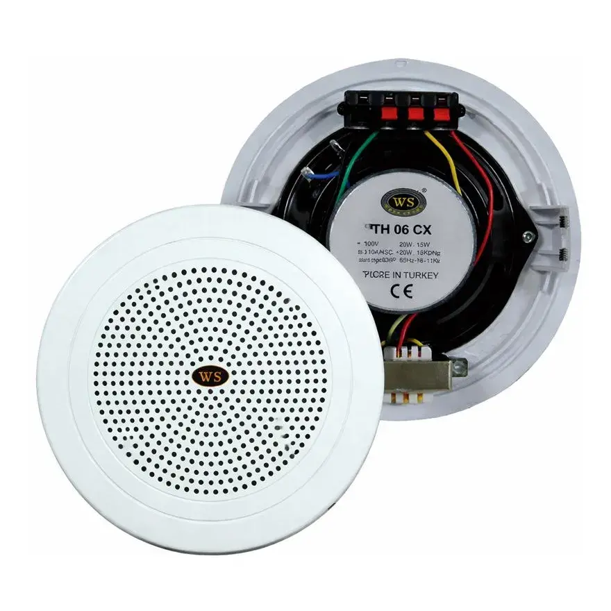 West Sound TH-06 CX, iç mekân sabit tesisatlı seslendirme ve anons uygulamaları için tasarlanmış 2 yollu tavan tipi pasif hoparlördür. 6 inç (16 cm) hoparlör yapısı sayesinde konuşma ve arka plan müziği yayınlarında dengeli ve net bir ses performansı sunar. Ofisler, mağazalar, okullar, hastaneler ve benzeri ticari alanlarda estetik ve yer tasarruflu bir çözüm sağlar.