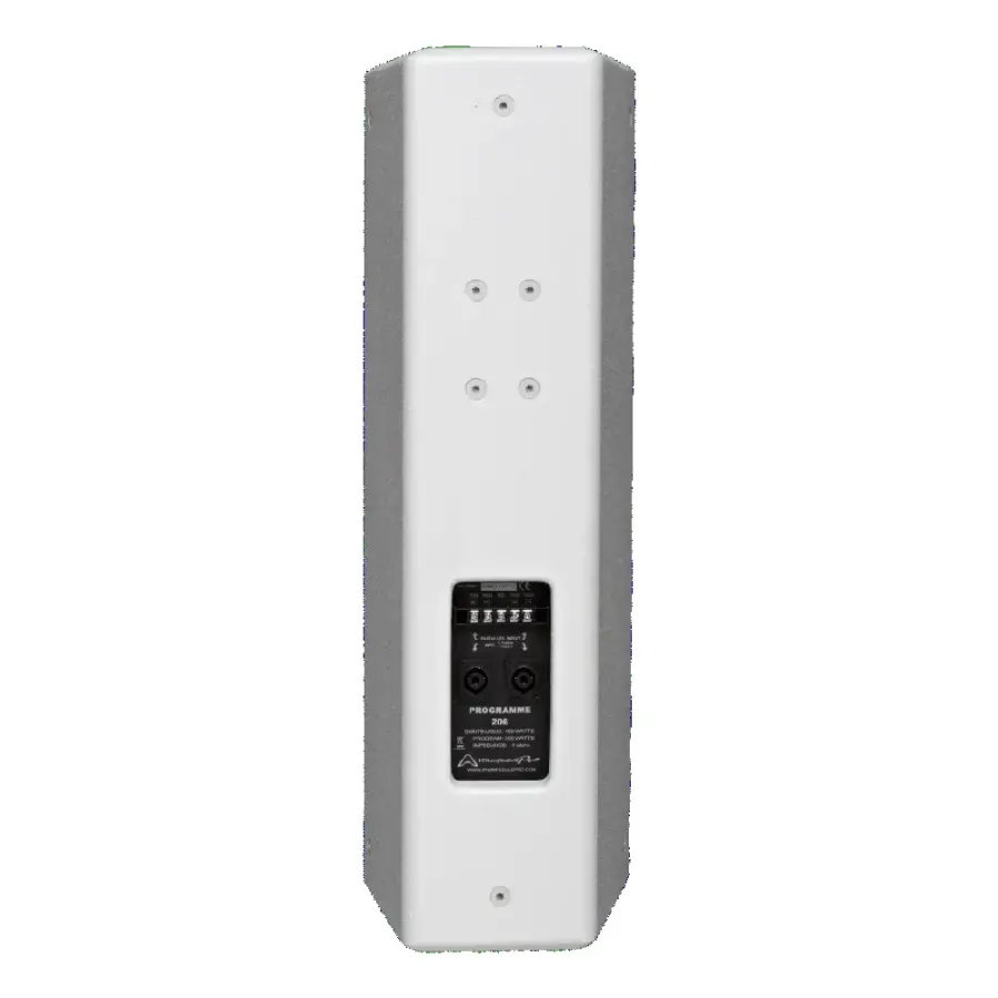 Programme-206T; çift 6.5" LF sürücüsüyle güçlü bass üretir, 1" titanyum compression driver ile uzun mesafeye yayılan net ve parlak tiz sunar; 70V/100V trafolu yapısıyla büyük ölçekli sabit kurulumlara tam uyumludur; 150W RMS gücü ve 120 dB SPL kapasitesiyle geniş mekanlarda yüksek performans sağlar; sağlam MDF kabin, çelik ızgara, M8 x 16 rigging noktaları ve duvar aparatı sayesinde kolay kurulum ve uzun ömürlü yapı sunar.
