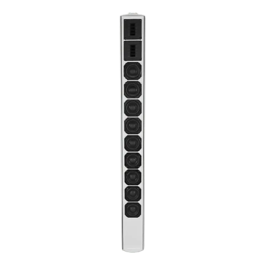 SIGMA-XV9T; mini EVO-Fold waveguide teknolojisiyle yatay ve dikey eksende tutarlı ve geniş kapsama sunar; 9 adet 3" LF sürücüsü ve 2 adet 1" PEI EVO-Fold HF driver ile yüksek SPL’de bile net ve doğal ses üretir; 70V/100V trafolu yapısı sayesinde büyük alanlarda esnek güç dağılımı sağlar; dayanıklı alüminyum kabin ve çelik ızgarasıyla uzun ömürlü profesyonel kullanım sunar; kompakt kolon tasarımı ile mimari alanlarda estetiği bozmadan güçlü ses sağlar.