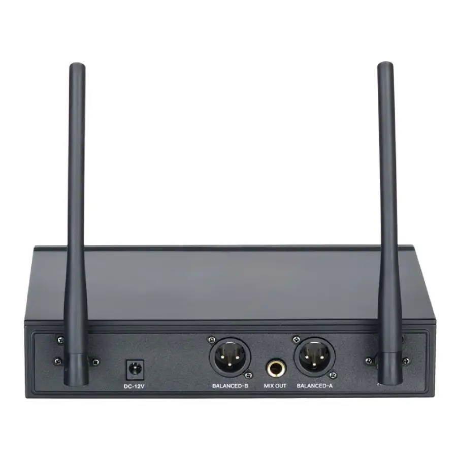 Sistem, bir adet el mikrofonu ve bir adet yaka (bodypack) mikrofonu içerir. Bu sayede hem vokal hem de konuşma uygulamalarında çok yönlü kullanım imkânı sunar. Çift kanallı yapı, iki mikrofonun aynı anda bağımsız olarak kullanılmasına olanak tanır. Her kanal için 100 farklı değiştirilebilir frekans seçeneği, frekans çakışmalarını önleyerek kararlı bir bağlantı sağlar. LED ekran, kanal, frekans ve sinyal seviyesini kolayca takip etmeyi mümkün kılar. 30Hz–20kHz frekans tepkisi, geniş ses aralığında doğal ve dengeli bir ses reprodüksiyonu sunar.
