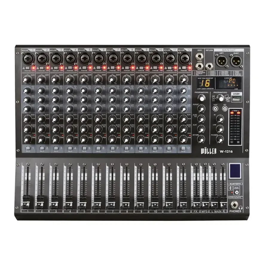 Kompakt yapısı, yüksek kaliteli komponentleri ve kullanıcı dostu arayüzü ile Wöller W-1216, hem sahne hem stüdyo ortamlarında temiz, güçlü ve dengeli bir ses yönetimi sağlar.