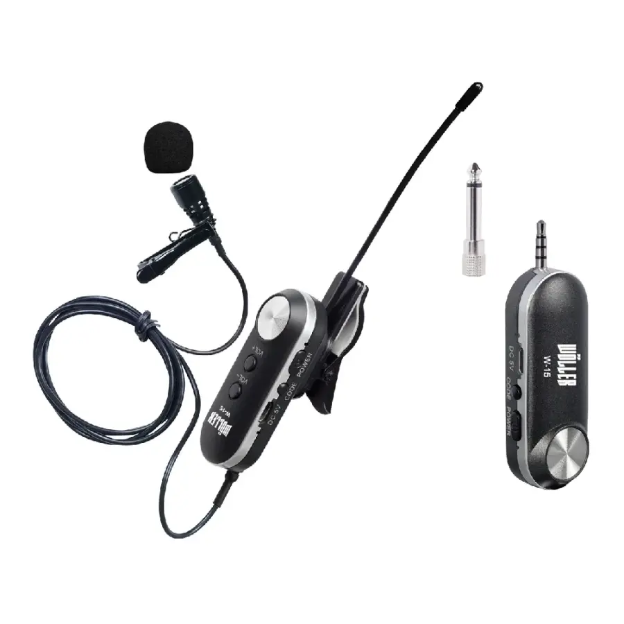 Wöller W-15, profesyonel sunumlar, ders anlatımları, sosyal medya içerikleri, röportajlar ve sahne uygulamaları için geliştirilen yüksek performanslı bir UHF kablosuz lavalier mikrofon setidir. UHF bandında çalışan yapısı sayesinde parazite dayanıklı, temiz ve istikrarlı bir ses iletimi sağlar.
