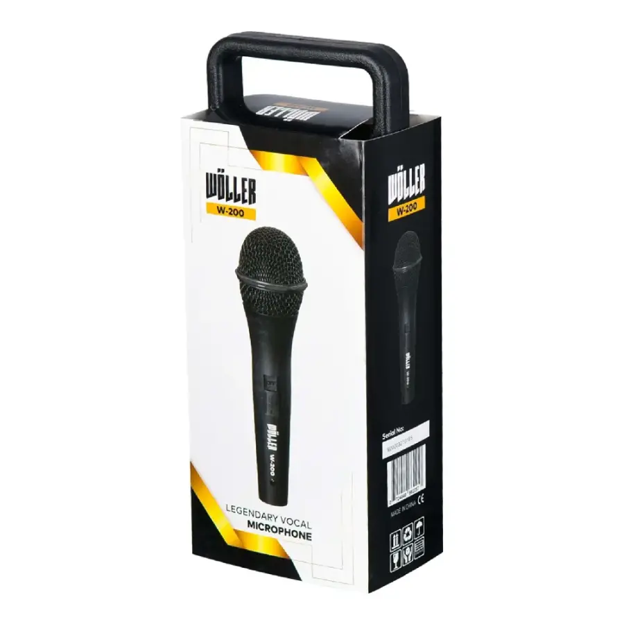 Wöller W-200, sahne performansları, vokal uygulamaları, sunumlar, anons sistemleri ve stüdyo kullanımları için tasarlanmış profesyonel bir kablolu dinamik el mikrofonudur. 600 Ohm empedans değeri ve yüksek kaliteli kapsülü sayesinde güçlü, detaylı ve temiz bir ses aktarımı sunar.