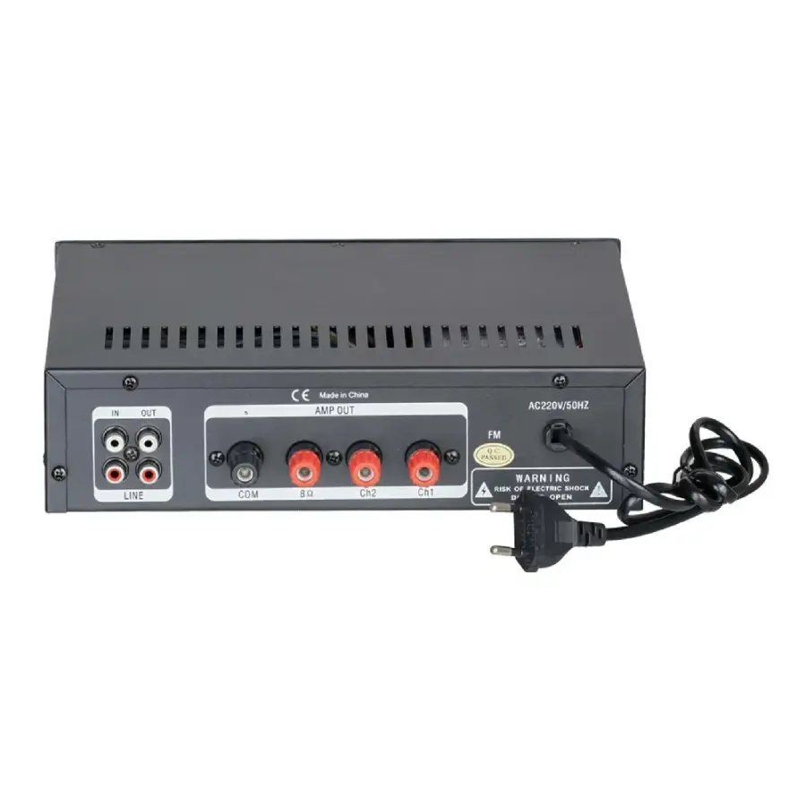 Wöller W-2120, sabit seslendirme sistemlerinde yüksek esneklik ve güçlü performans arayan işletmeler için tasarlanmış profesyonel bir 100V hat trafolu mikser amplifikatördür. Maksimum 100 Watt çıkış gücü ile küçük ve orta ölçekli mekânlarda temiz, stabil ve güvenilir ses aktarımı sağlar. İki bağımsız bölgeyi ayrı ayrı kontrol edebilme özelliği sayesinde restoran, kafe, okul, mağaza, ofis ve ibadethane gibi çok alanlı kurulumlarda ideal bir çözüm sunar. USB/SD kart ve Bluetooth bağlantısı modern medya çözümlerine anında erişim sağlarken; iki mikrofon girişi, duyuru ve etkinlik uygulamalarında geniş kullanım imkânı sunar. Bass, Tiz ve Echo kontrolü ile ses karakteri ortama uygun şekilde detaylıca şekillendirilebilir. Uzaktan kumanda desteği ise kullanım kolaylığını artırarak Wöller W-2120’yi kurumsal ses sistemleri için güvenilir ve çok yönlü bir seçenek haline getirir.