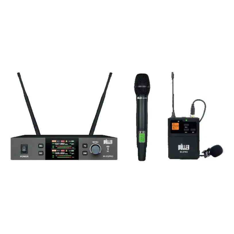 Wöller W-312PRO-EY Çift Kanal UHF Kablosuz El ve Yaka Mikrofonu Seti, sahne performansları, sunumlar, eğitimler, canlı yayınlar ve etkinliklerde profesyonel ses iletimi için tasarlanmış gelişmiş bir kablosuz mikrofon sistemidir. Gelişmiş PLL dijital modülasyon teknolojisi sayesinde net, kararlı ve parazitsiz bir ses aktarımı sağlar. 2x99 adet değiştirilebilir frekans seçeneği ile birden fazla sistemin aynı ortamda çakışmadan çalışabilmesine imkân tanır. Şarj edilebilir alıcı özelliği taşınabilirlik ve enerji verimliliği sunarken, hem el mikrofonu hem de yaka mikrofonu içeren çift mikrofon yapısı sayesinde farklı kullanım senaryolarına esneklik kazandırır. Geniş 30Hz–30kHz frekans tepkisi, sesin her frekans aralığında güçlü, berrak ve doğal şekilde iletilmesini sağlar.