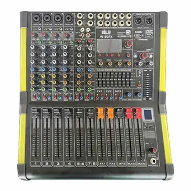 9 bant ekolayzer, tüm frekans aralıklarında detaylı ses kontrolü sağlar. 2x99 DSP efekt motoru ise sahne performanslarına derinlik ve karakter kazandırır. Bluetooth ve USB desteği, kablosuz müzik aktarımı ve dijital kayıt kolaylığını bir araya getirir. Ayarlanabilir hafıza özelliği sayesinde farklı miksaj ayarları kayıt edilip daha sonra hızlıca çağrılabilir. Kompakt ve ergonomik yapısıyla Wöller W-80FX, taşınabilirlik ve profesyonel ses kontrolünü tek bir cihazda buluşturur.