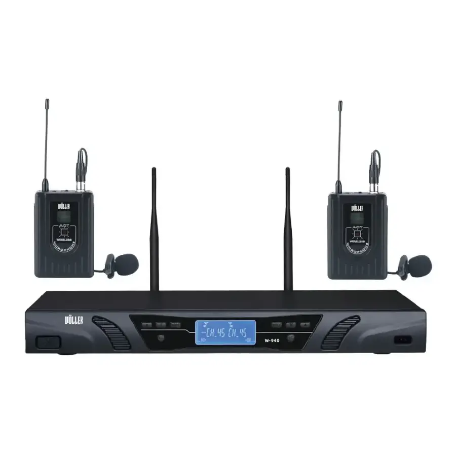 Wöller W-940YY, profesyonel sahne, konferans, eğitim ve yayın ortamlarında mükemmel ses performansı sunmak için tasarlanmış çift kanallı UHF kablosuz yaka mikrofon sistemidir. 2x100 frekans seçeneği sayesinde farklı çalışma ortamlarında kesintisiz ve kararlı bir bağlantı sağlar. Gelişmiş dijital modülasyon teknolojisi, yüksek sinyal doğruluğu ve düşük parazit seviyesiyle net bir ses aktarımı sunar. 1U rack kabin uyumlu alıcısı, profesyonel ses sistemlerine kolayca entegre edilebilir. LED ekranı, frekans ve sinyal durumlarını net biçimde gösterir. 500–590 MHz frekans aralığı ve 30Hz–30kHz geniş frekans tepkisi ile sahne, yayın, ibadet ve sunum uygulamalarında profesyonel standartlarda performans sağlar.