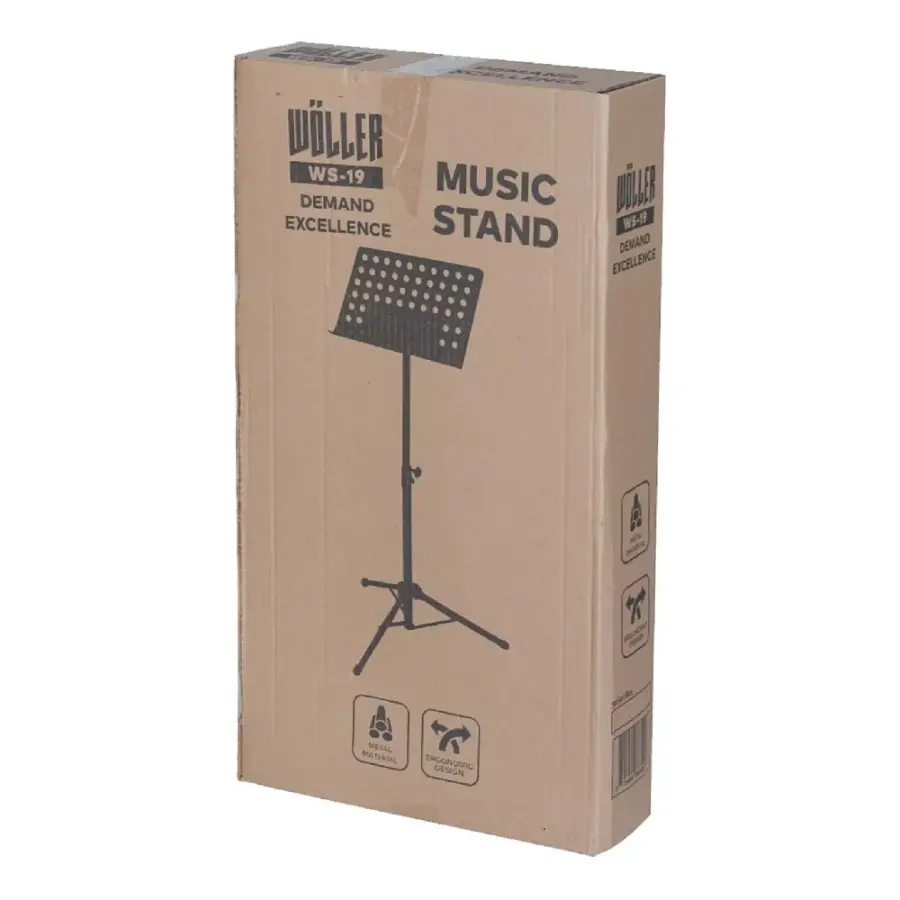 3.10 kg ağırlığı ve dengeli ayak yapısı, kullanım sırasında stabilite sağlayarak notaların kaymasını veya sehpanın devrilmesini önler. Siyah renk kaplaması profesyonel ve estetik bir görünüm sunarken dış etkenlere karşı dayanıklılık sağlar. WS-19, hem amatör hem profesyonel müzisyenlerin ihtiyaçlarına yönelik olarak geliştirilmiş pratik, sağlam ve ergonomik bir nota sehpasıdır.