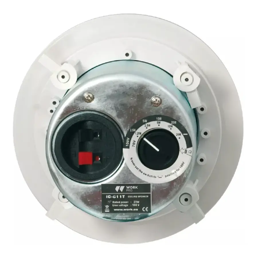 Gelince Haber VerWork Pro IC 611 T, güçlü performansı ve sağlam yapısıyla profesyonel ses sistemleri için geliştirilmiş iki yollu tavan hoparlörüdür. 6.5” woofer ve 0.5” tweeter kombinasyonu sayesinde 90 Hz – 20 kHz frekans aralığında net, dengeli ve kaliteli ses üretir. Hem 8 Ohm düşük empedans hem de 70V/100V hat sistemleri ile uyumluluk sunarak farklı kurulum ihtiyaçlarına esneklik sağlar.