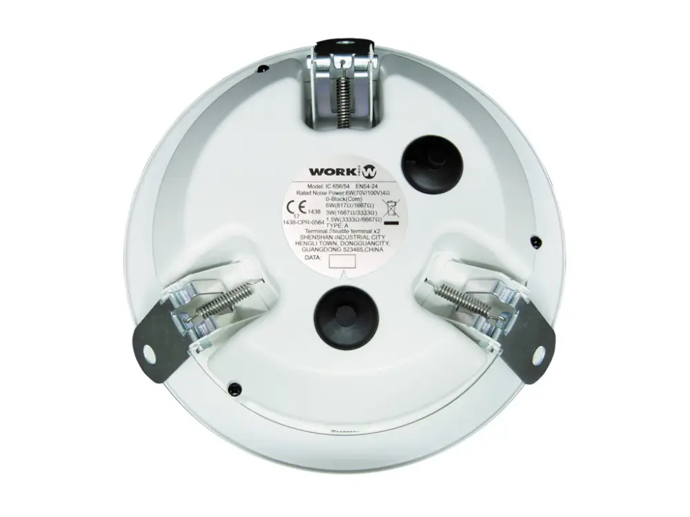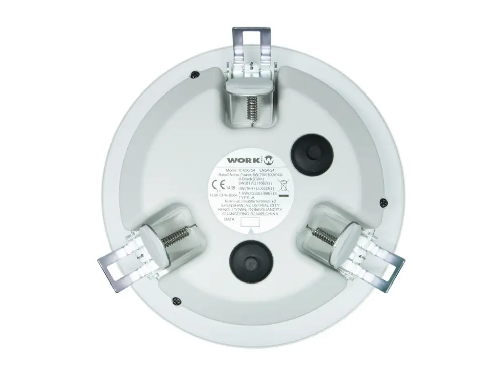WORK PRO IC tavan hoparlörleri EN 54-24 (Yangın Alarm ve Yangın Algılama Sistemi) acil durum güvenlik standardına uygundur ve bu nedenle tahliye sistemlerinde kullanılabilir. IC 656/54 hoparlör, acil bir durumda yangın hasarını önleyen 5VB plastikten tasarlanmış ve üretilmiştir. Tavan panelindeki hoparlör montaj yayı kullanılarak kolayca monte edilebilir. Bu hoparlör, mükemmel ses kalitesi sunan yüksek empedanslı hatlara (70/100V) monte edilmesini sağlayan bir transformatöre sahiptir. Kullanımı ofisler, havaalanları, restoranlar, süpermarketler veya okullar gibi alanlarda kurulum için idealdir.
