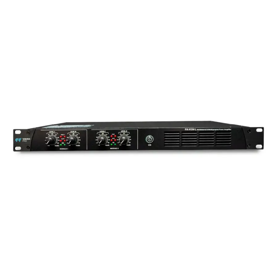 Gelince Haber VerWork Pro PA 4150 L, profesyonel sabit kurulumlar için tasarlanmış 4 kanallı Class D güç amfisidir. Her kanalda 150W çıkış gücü sunarak toplamda yüksek performans sağlar. Hem 70V hem de 100V hat sistemlerinde çalışabilen bu model, DIP anahtarları ile kolayca yapılandırılabilir.